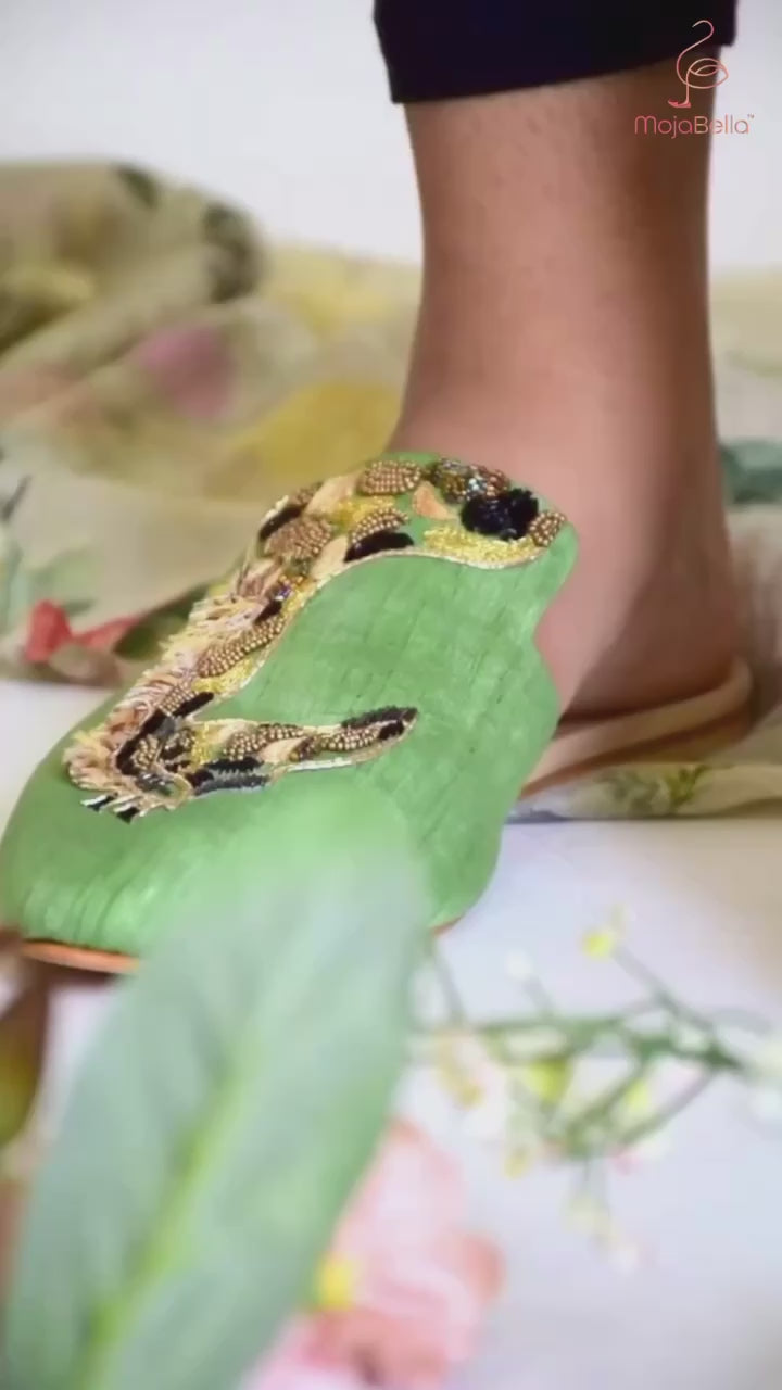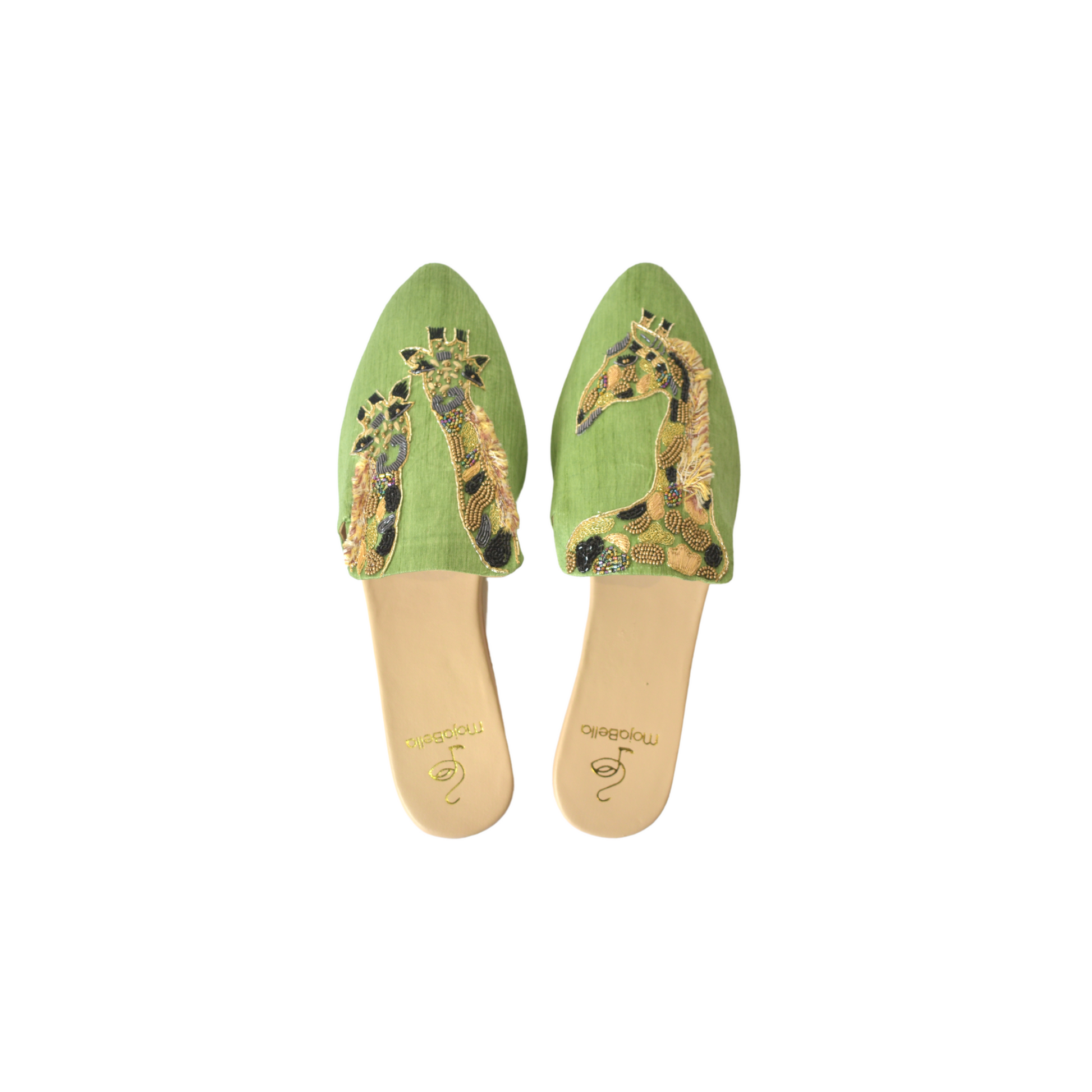 Looking for a blend of comfort and style in green mules? Discover Mojabella's "Giraffie" handcrafted mules, a unique creation merging comfort, artistry, and elegance.